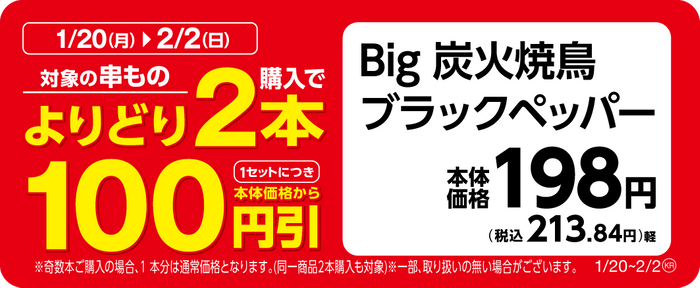 【キャンペーン内容:対象の串ものよりどり2本ご購入で1セットにつき本体価格から100円引き※2】
