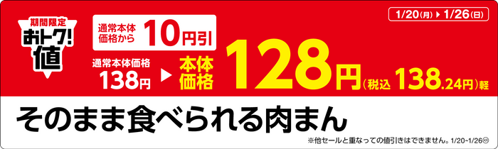 ●通常本体価格:138円(税込価格149.04円)※1→キャンペーン時本体価格:128円(税込価格:138.24円)※1