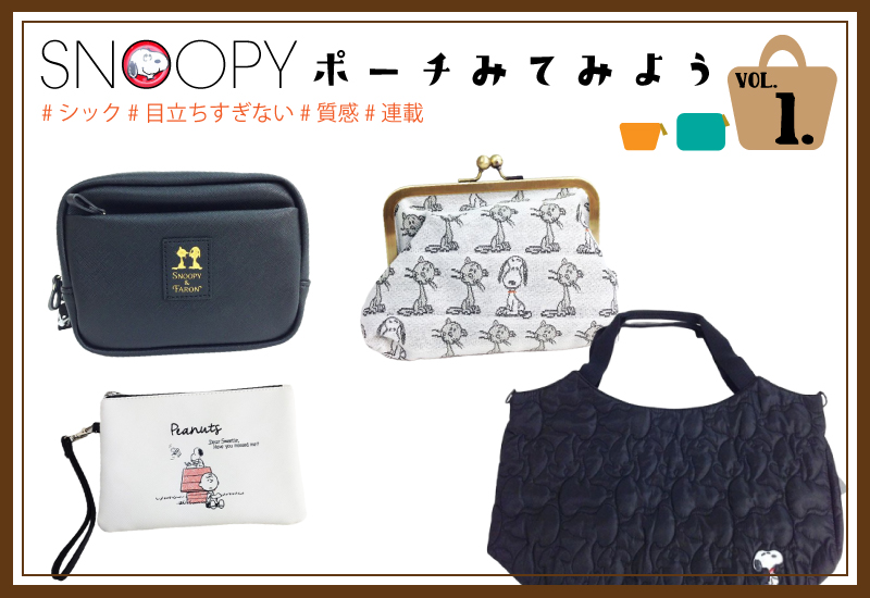 スヌーピーのポーチ連載第2回はデイリーユースにもぴったり♪落ち着いた雰囲気でもかわいらしさを忘れない、スヌーピーの大人かわいいポーチをご紹介します♡