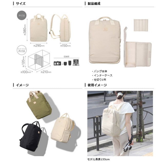 インナーケースや中仕切りを外せば、カメラを持ち運ばない日でも軽くて使いやすい通常のバッグとして活躍します。