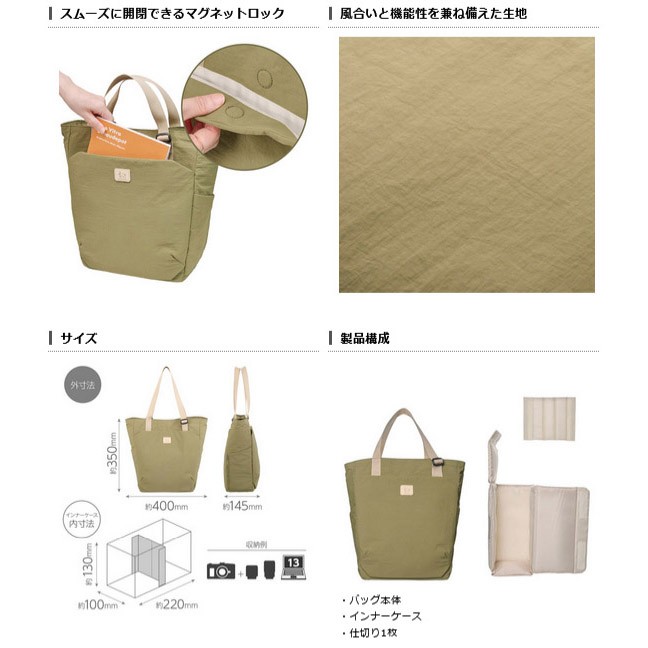 インナーケースを取り外せば、軽くて使いやすい通常のトートバックとして活躍します。