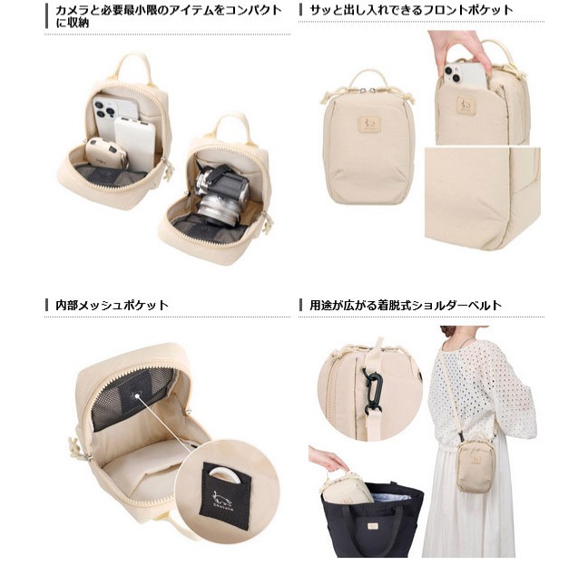 コンパクトカメラや小型ミラーレス一眼カメラを、スマートフォンやお財布などと一緒にシンプルに持ち運ぶのに最適なサイズです。程よいクッション性があり、かさばらずに安心してカメラを持ち運べます。