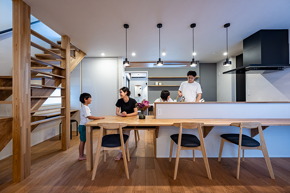 木の手触り、視線の抜け、足音の響き、空気のやわらかさ。五感で感じる“居心地の良さ”が、この家の設計コンセプトです。