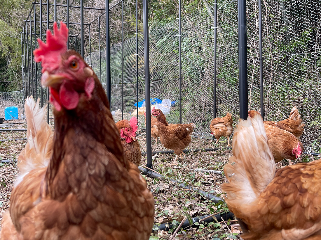 飼育できるニワトリは3種類で、赤玉卵を産むボリスブラウン、青い卵のアローカナ、栄養価が高いウコッケイ。この中から飼いたいニワトリを選んで購入(1羽5,000円より)。実際の餌やりや鶏舎の掃除などは毛利さんやスタッフがやります。餌もオリジナル飼料3種類から選択可能。ニワトリの様子は24時間、ライブ配信される鶏舎の映像で観察できます。