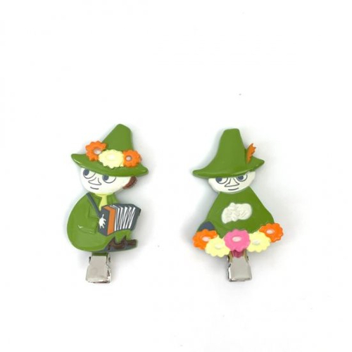 スナフキンは2個ともお花に囲まれたデザインです。緑とお花のカラフルな組み合わせが素敵♪前髪をクリップでとめると、視界がスッキリしてデスクワークもはかどりますよ。制服のリボンやネクタイのアクセントとして付けても可愛いかも♡