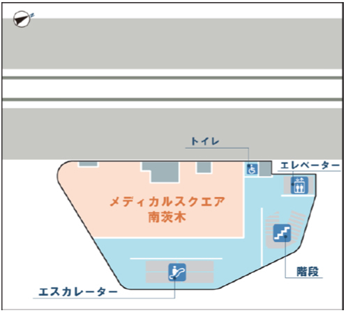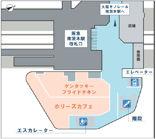 まず、本ビルと直結する南茨木駅(阪急京都線)への動線については、エレベーターと階段を先行して設置し、供用を開始しておりますが、今般、これに加えて、ビル内にエスカレーターを新たに設け、本年7月28日からご利用いただけるようになりました。