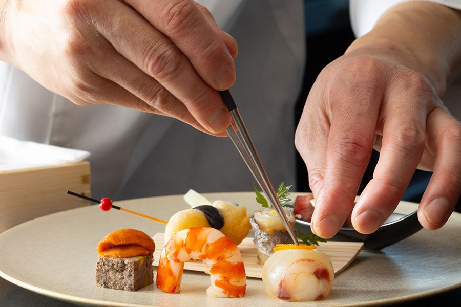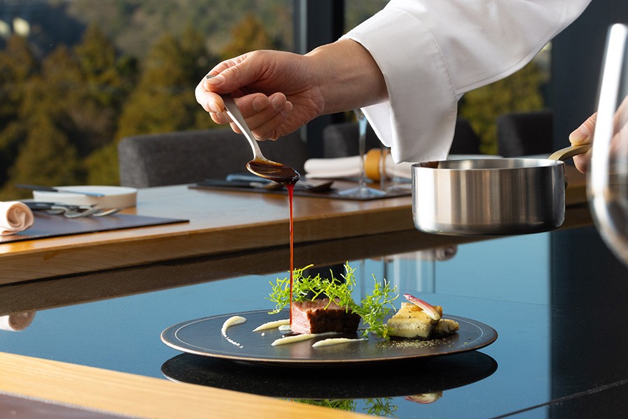 天空に佇むリゾートを舞台に、フレンチと鮨が響き合う一夜限りの饗宴。元ミシュラン二つ星店 「ピエール・ガニェール東京」で、エグゼクティブシェフとして研鑽を重ねた、東京・麻布十番 「La Maison Confortable」オーナーシェフ赤坂氏と、「豊後前 霧翠」料理⻑・三好が出会い、大分が誇る山海の恵みを芸術へと昇華。洗練された技巧と感性が織りなす、ここでしか味わえない唯一無二の食体験をお届けいたします。