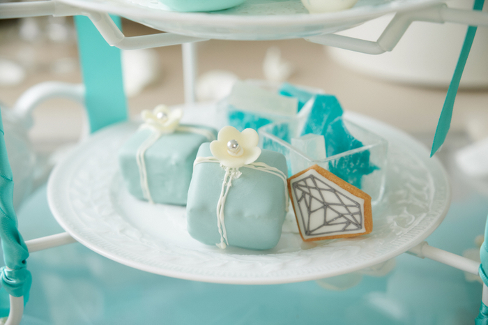 ・特別な日にふさわしい シャンパンのジュレ・バニラとラズベリーのハートムース・エルダーフラワーパンナコッタ・シトロンフレーバーの”サムシング・ブルー”マカロン・チョコとふんわりスポンジのグラデーションロリポップ・ホワイトリボンのパウンドケーキBOX・ダイヤモンドとサファイアをイメージしたミニャルディーズ