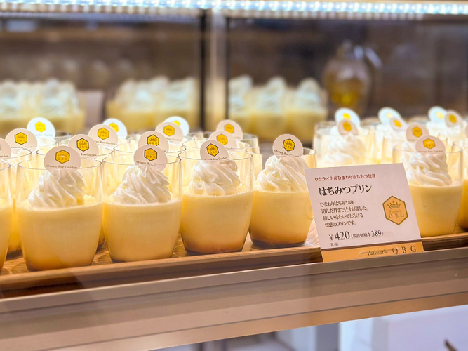 はちみつだけの甘さで仕上げた生クリームが自慢の「はちみつショートケーキ」をはじめ、6種類のカットケーキや、新作の「はちみつプリン」も販売。