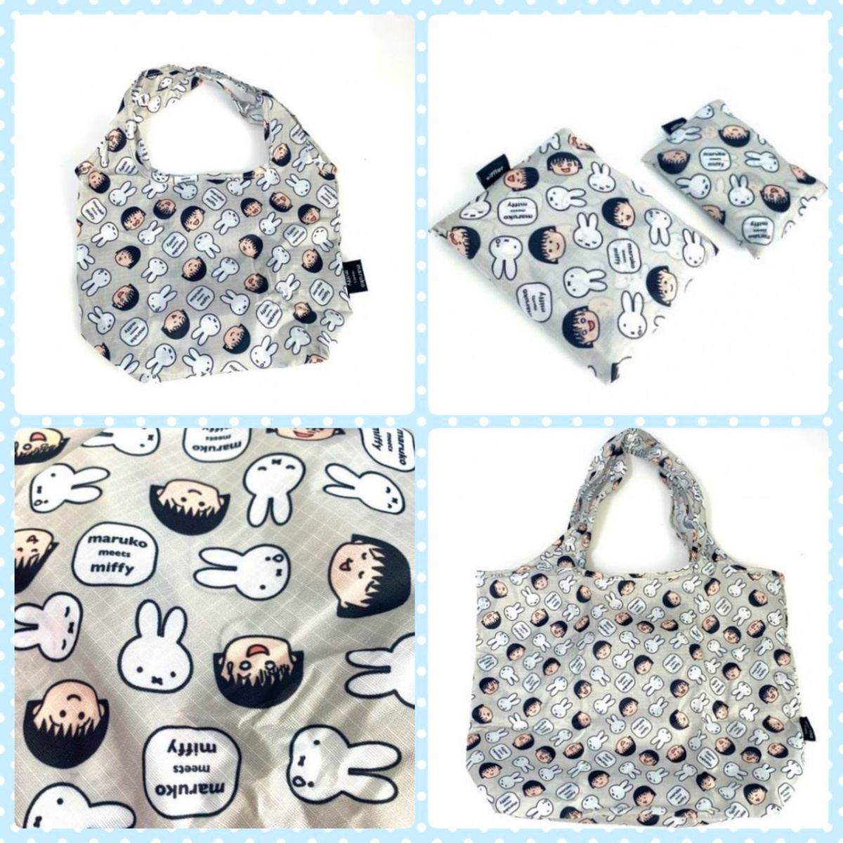 ミッフィーとちびまる子ちゃんのお顔がプリントされたエコバッグ。使っているだけで注目を集めそうなデザインです♪