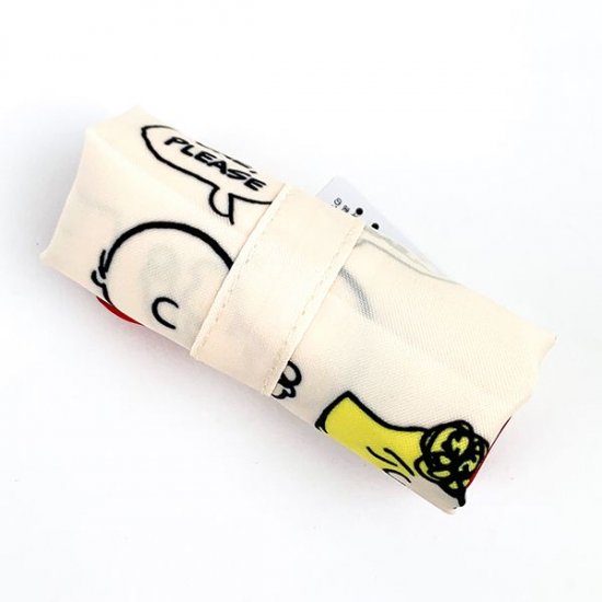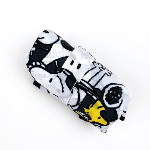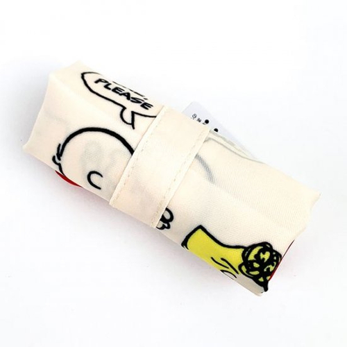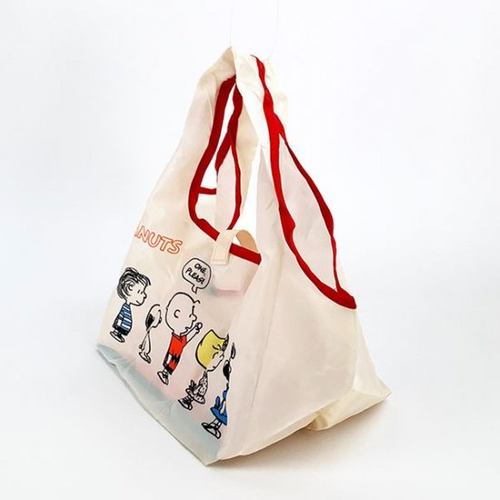 スヌーピーの マチ広エコバッグで、もうコンビニ弁当も傾かない!使わない時は丸めてカバンに収納。可愛くて便利なので、ちょっと見てほしい。