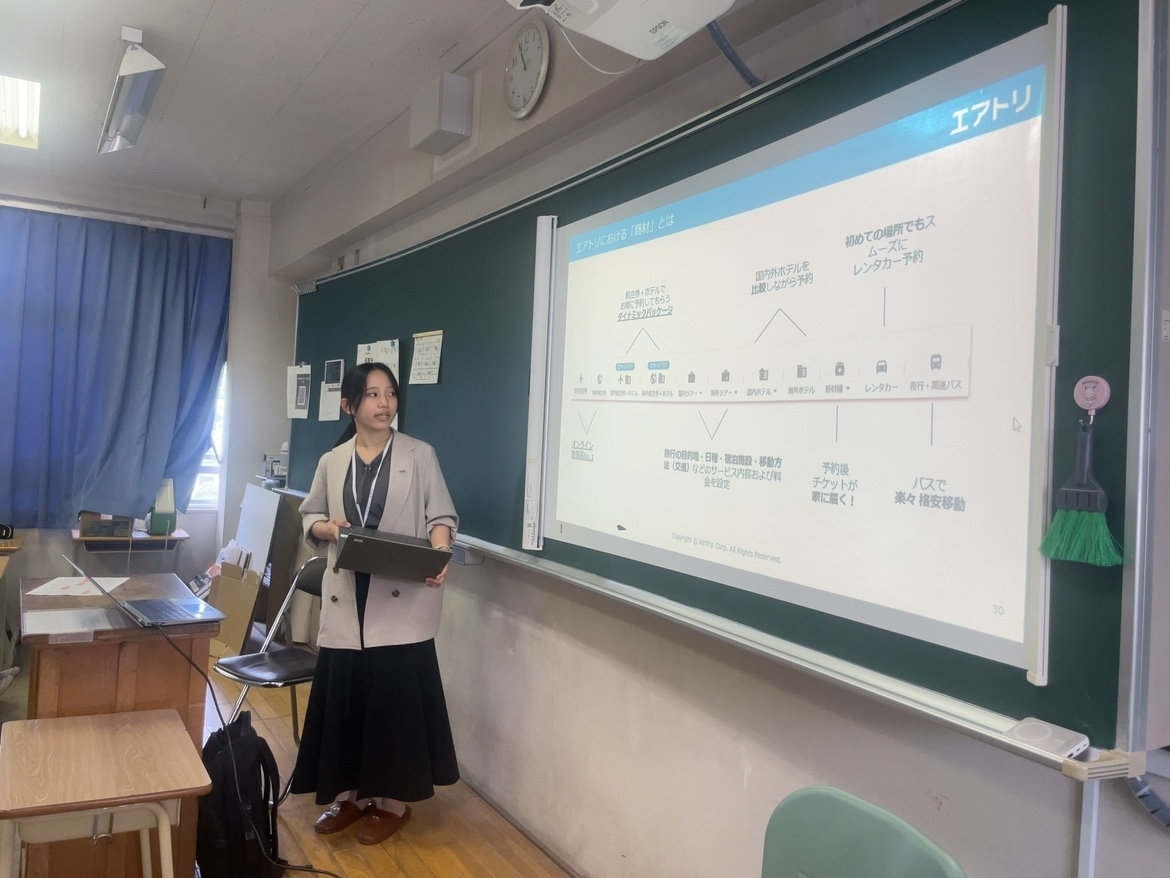 株式会社BatonLinkが提供する探究プログラムに参画し、「エアトリ」の新規商材立案という実戦的なミッションを提示しました。講評や対話を通じて、高校生ならではの視点を引き出し、社会課題を自分事として捉える「探究力」を養うプロセスを支援しました。