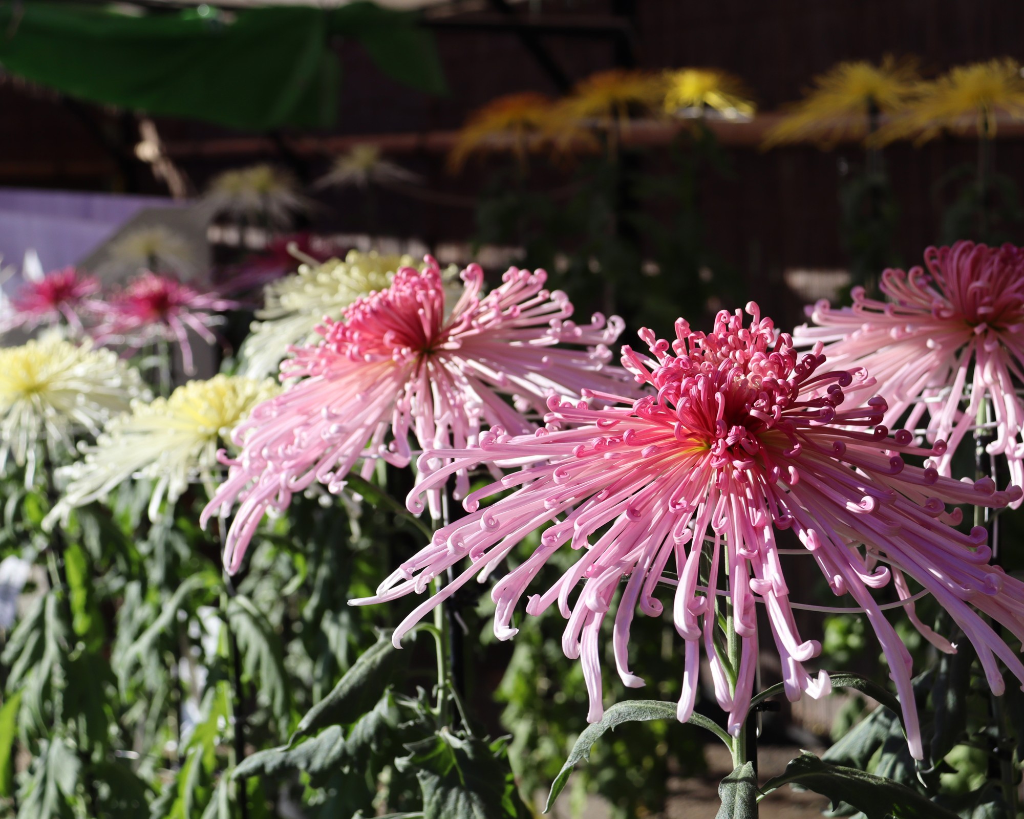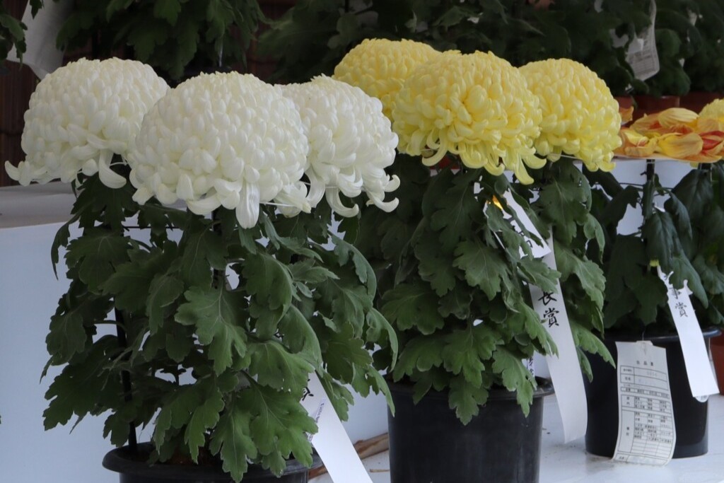 秋空のもとで、伝統が脈打つ菊の姿をご堪能ください。