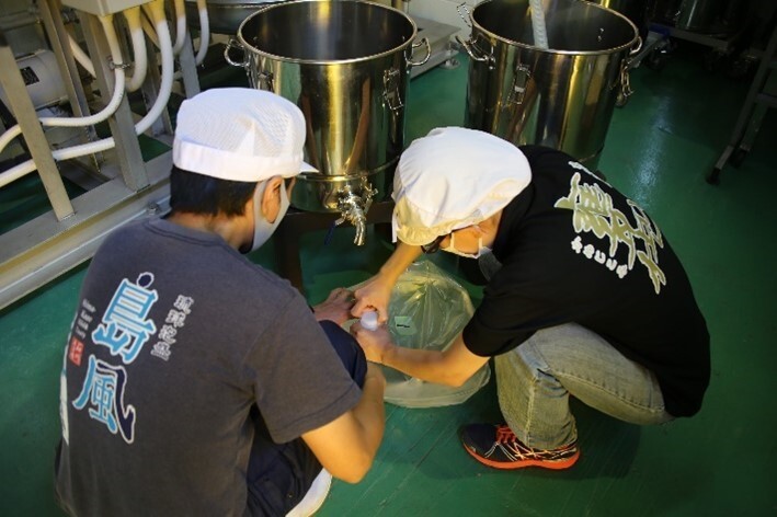 事前の試験段階では、数ヶ月にわたり150案以上のブレンドパターンを検討し、レシピを考案。今回の実機製造で出来た原酒と試験製造の原酒のズレを調整しながら、レシピを元にしたブレンド泡盛を製造していきます。