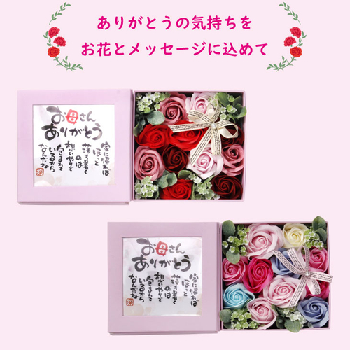 ◇母の日ギフト 「お母さんありがとう」ポエム付きフラワーボックス ティータイムセット