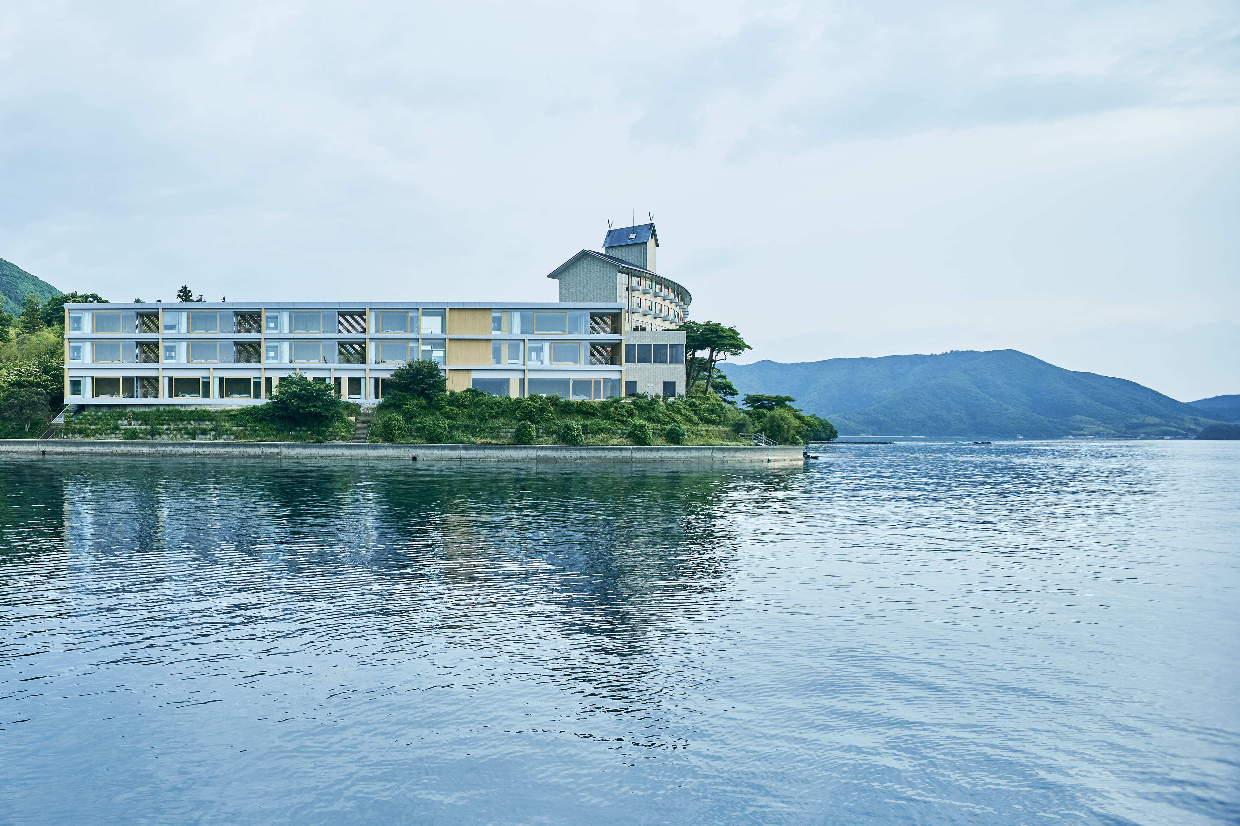 海士町に2021年オープンした世界初の「ジオホテル」。ユネスコ世界ジオパークの地層や地形を、建築自体で体感できる革新的な設計を特徴とします。自然に溶け込むような広々とした空間で、大地の物語を肌で感じる特別な宿泊体験を提供します。(Photo by Kentauros Yasunaga)