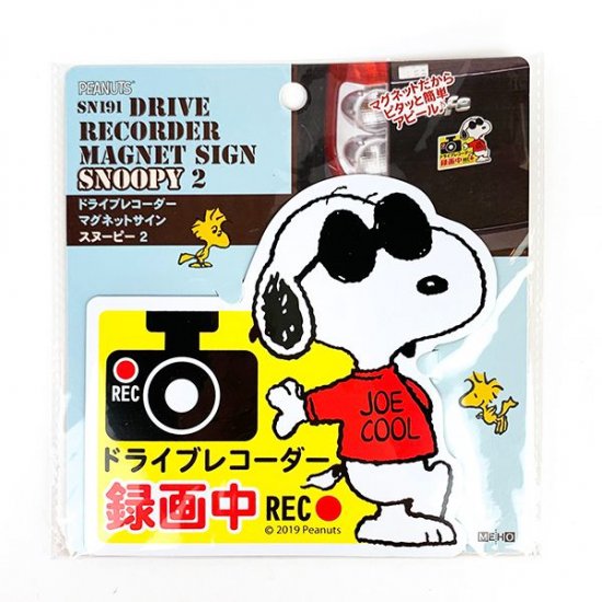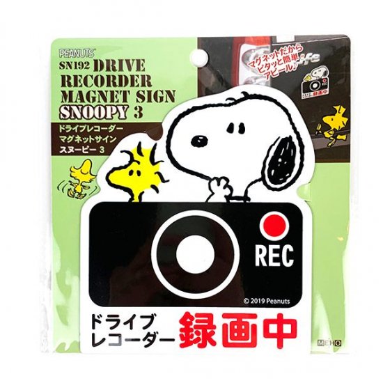 ピタっと貼れて愛車のドラレコ録画中をアピール♪マグネットサインはデザインもキュート。スヌーピーのカー用品はいつも可愛いんだよな、、、