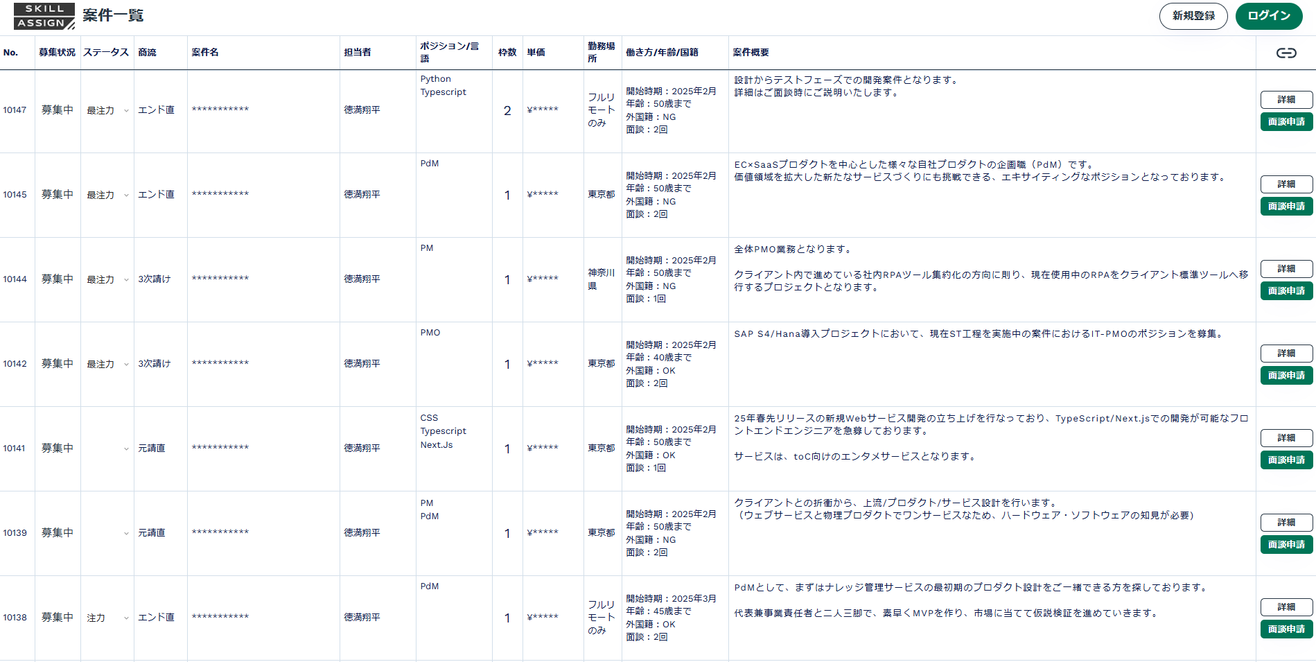 ※1 登録案件は『エンド・元請企業様案件|Ruby/Python/PHP/AWS/Azure/プロジェクトマネージャー/プロダクトマネージャー/PMO領域|単金70~150万円の案件』がメインとなります。