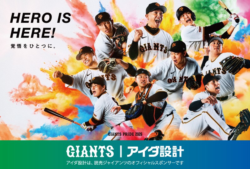 アイダ設計は2021年より、読売ジャイアンツのオフィシャルスポンサー契約を締結しておりましたが、2026年も引き続きスポンサードいたします。