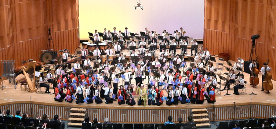 海外においても積極的に活動しており、音楽のオリンピックとも称される「世界音楽コンテスト(WMC)」にオランダのケルクラードで出場。平成9年(1997年)には「ファーストディヴィジョン」、平成13年(2001年)には最高グレードである「コンサートディヴィジョン」で、いずれも金メダルを受賞しました。また、平成28年(2016年)には第7回韓国国際吹奏楽祭に日本代表バンドとして招聘されるなど、国際的な舞台でも高い評価を受けています。さらに、「ブラスエキスポ2025」や「いのち輝く吹奏楽」など万博関連のイベントにも出演し、マーチングなどの多彩なスタイルでの演奏活動も積極的に行っています。現在、約100人の部員が在籍し、日々練習と演奏活動に励んでいます。