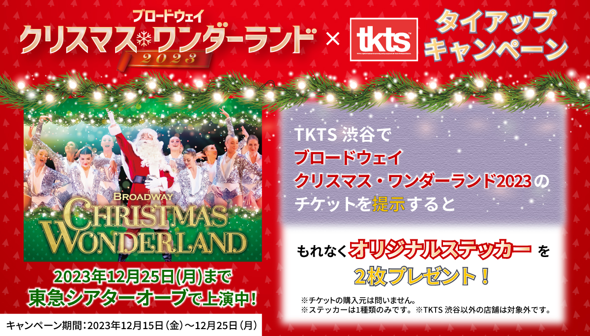 「ブロードウェイクリスマス・ワンダーランド2023」 TKTS渋谷でオリジナルステッカーが“もれなくもらえる”キャンペーン開催!