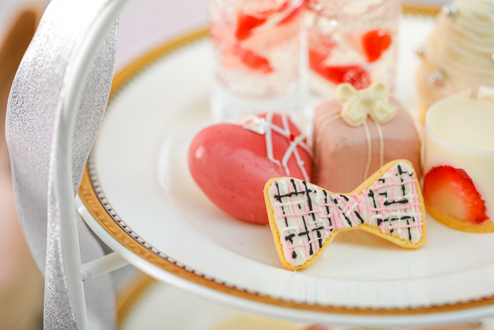 【デザート】イチゴのクリスタルジュレ / ツイードリボンのアイシングクッキー / ホワイトモンブランのクリスマスツリー / ベリーのプレゼントBOX / リップのアイシングクッキー / マカロン / ベリーのハートムース / キュイエールショートケーキ / スコーン2種(プレーン チョコチップ)~ハニーを添えて~