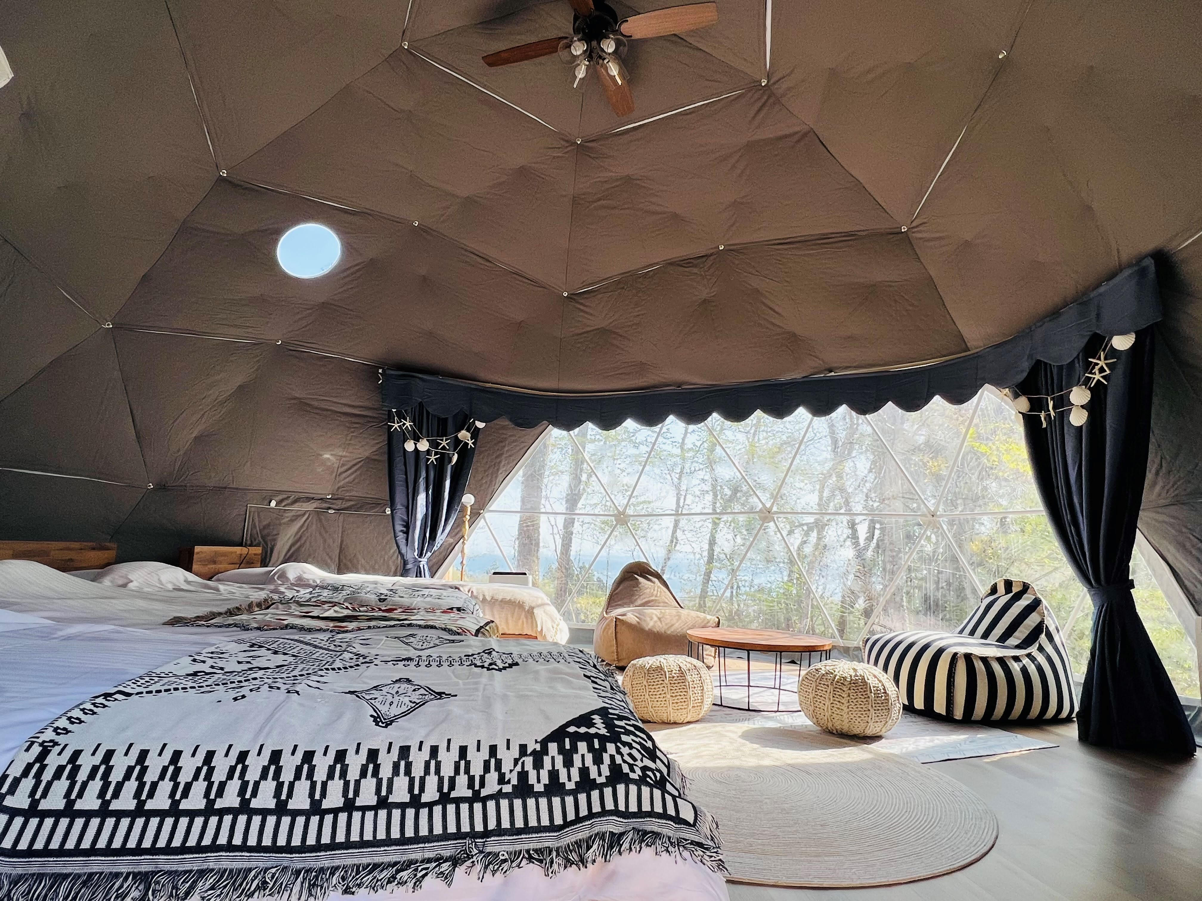 ドームテントでの夕食・朝食付ご宿泊&翌日チェックアウト後の「みちのく潮風トレイル」大島コーストレッキングガイド付