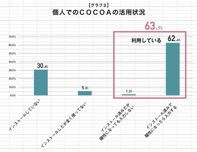 リスク対策.comは、政府が経済団体や各業界団体を通じて広く活用を呼び掛けている「新型コロナウイルス接触確認アプリ(COCOA)」( 以下、COCOA)について、各組織が従業員らに対しCOCOA の導入をどの程度促しているかを明らかにするため、7月28日~ 8月4日の1週間、リスク対策.comメールマガジン購読者に対してアンケート調査を実施し、380 件の有効回答を得た。その結果、個人としてCOCOAを活用しているとの回答は約63.9%だったのに対し、組織として従業員にCOCOAを推奨、あるいは指示しているとの回答は31.6%にとどまった。感染防止の有効性については理解が得られているものの、プライバシーやセキュリティ、システムへの不安が障壁になっている傾向が表れた。また、外部からのCOCOA活用の要請と、組織における活用状況を分析すると、経済団体や取引先、業界団体、行政から要請があったと回答した組織ほど従業員に対しても推奨している割合が高い傾向が浮かび上がった。回答者の組織規模は101 ~ 500 人の中堅企業が最も多かったが、中小企業から大企業まで幅広く回答を得た。業種別には製造業が最も多く、回答者の大半が総務やリスクマネジメントに関連する部門の担当者だった。