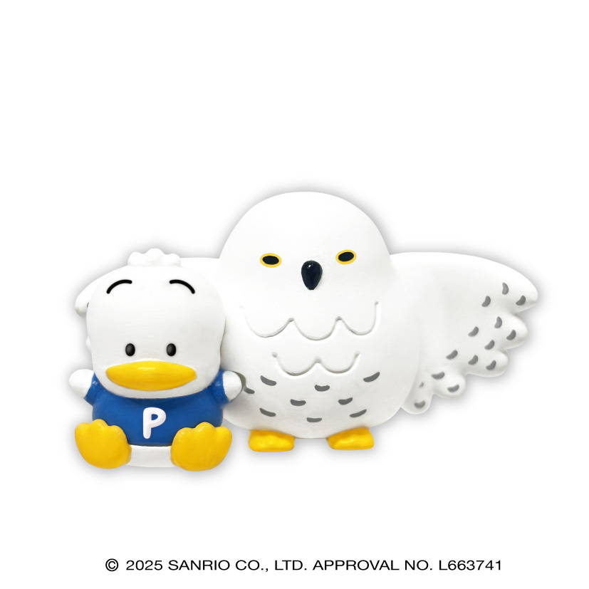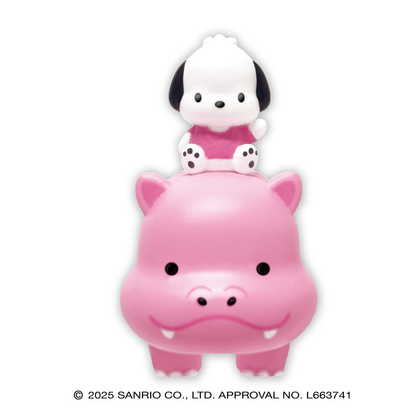 ラインナップは、カバとポチャッコ、キリンとけろけろけろっぴ、マレーグマとタキシードサム、シロフクロウとあひるのペックル、ドリルとハンギョドン、チュウゴクオオカミとバッドばつ丸、の全6種。サンリオのキャラクター「はぴだんぶい」の仲間たちが天王寺動物園の動物たちと仲良く寄り添いフィギュア化。