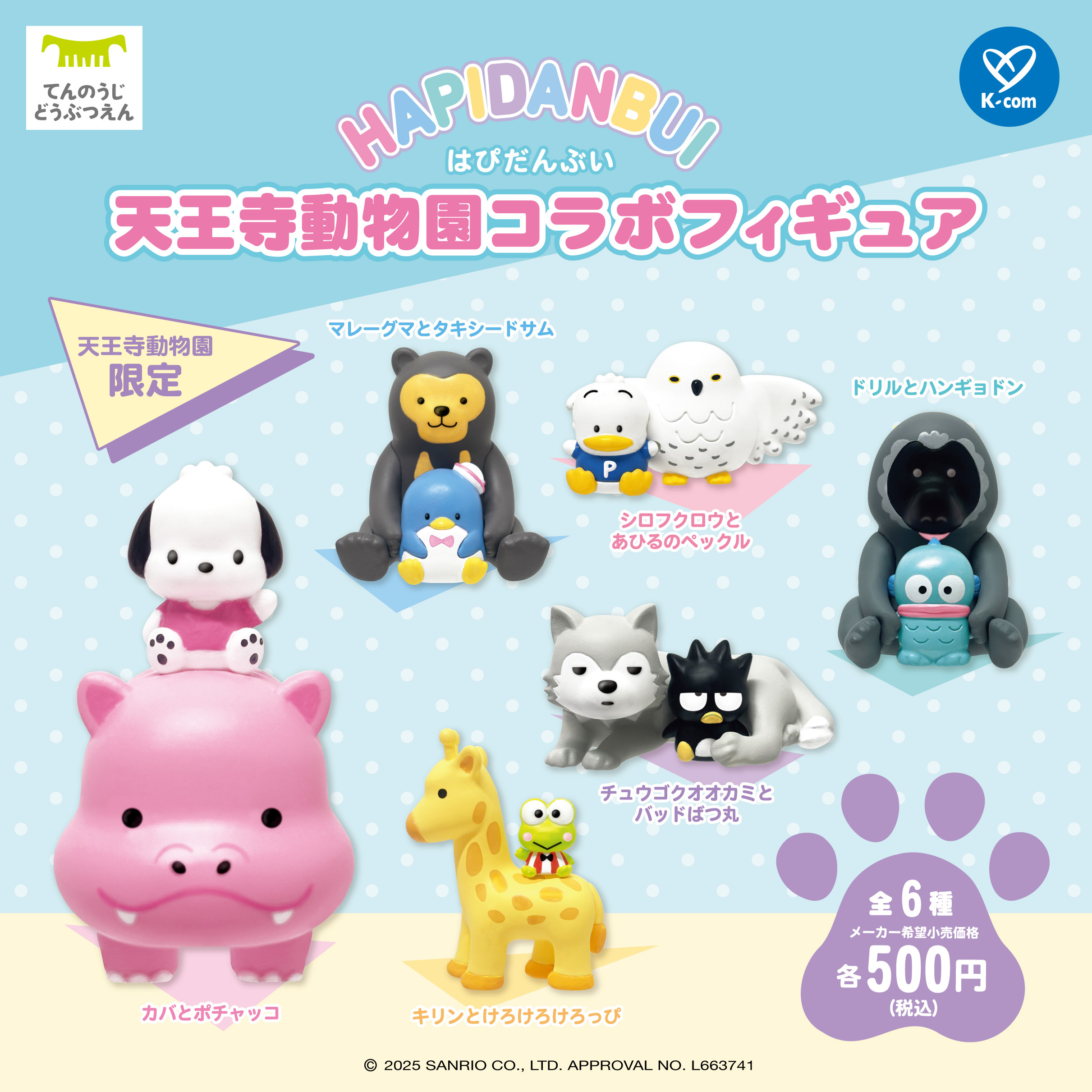 カプセルトイの卸問屋である有限会社トミヤ(本社:大阪府門真市、代表取締役社長:富 一人)は、天王寺動物園コラボ第5弾、「サンリオキャラクターズ」としては第2弾となる「はぴだんぶい 天王寺動物園コラボフィギュア」を2025年11月18日(火)より販売開始します。このフィギュアは、天王寺動物園限定販売商品となります。