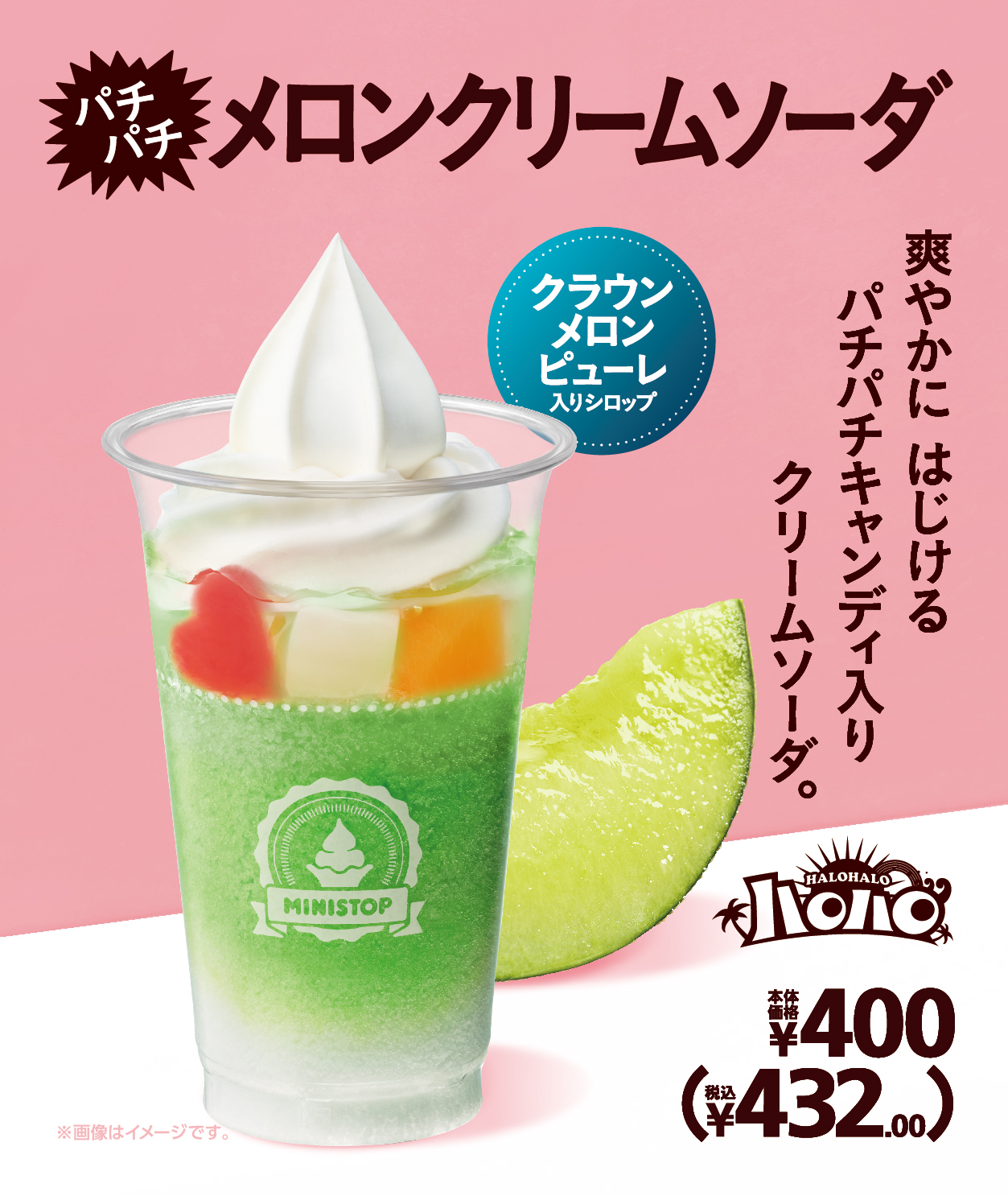 ミニストップは、夏の風物詩として愛されている人気の「ハロハロ」シリーズから、夏本番に向けて3種類のハロハロを発売します。ひとつ目は、お子さまから大人の方まで人気のメロンをパチパチはじけるクリームソーダ風にした「パチパチメロンクリームソーダ」。果実氷シリーズからは2種類。人気定番の「いちご」の他に、北海道産あずきを丁寧に炊いた「あんこ」と合わせた「いちごあずき」を発売します。