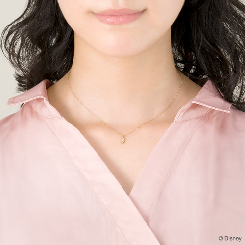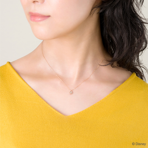 ベルと野獣を真実の愛へと導いた魔法のバラをモチーフに。18金ピンクゴールドとダイヤモンドの上質な輝きが、胸元に気品と華やぎを添えます。あらゆる角度から見て美しいよう、細部にいたるまで精巧に表現したジュエリー。