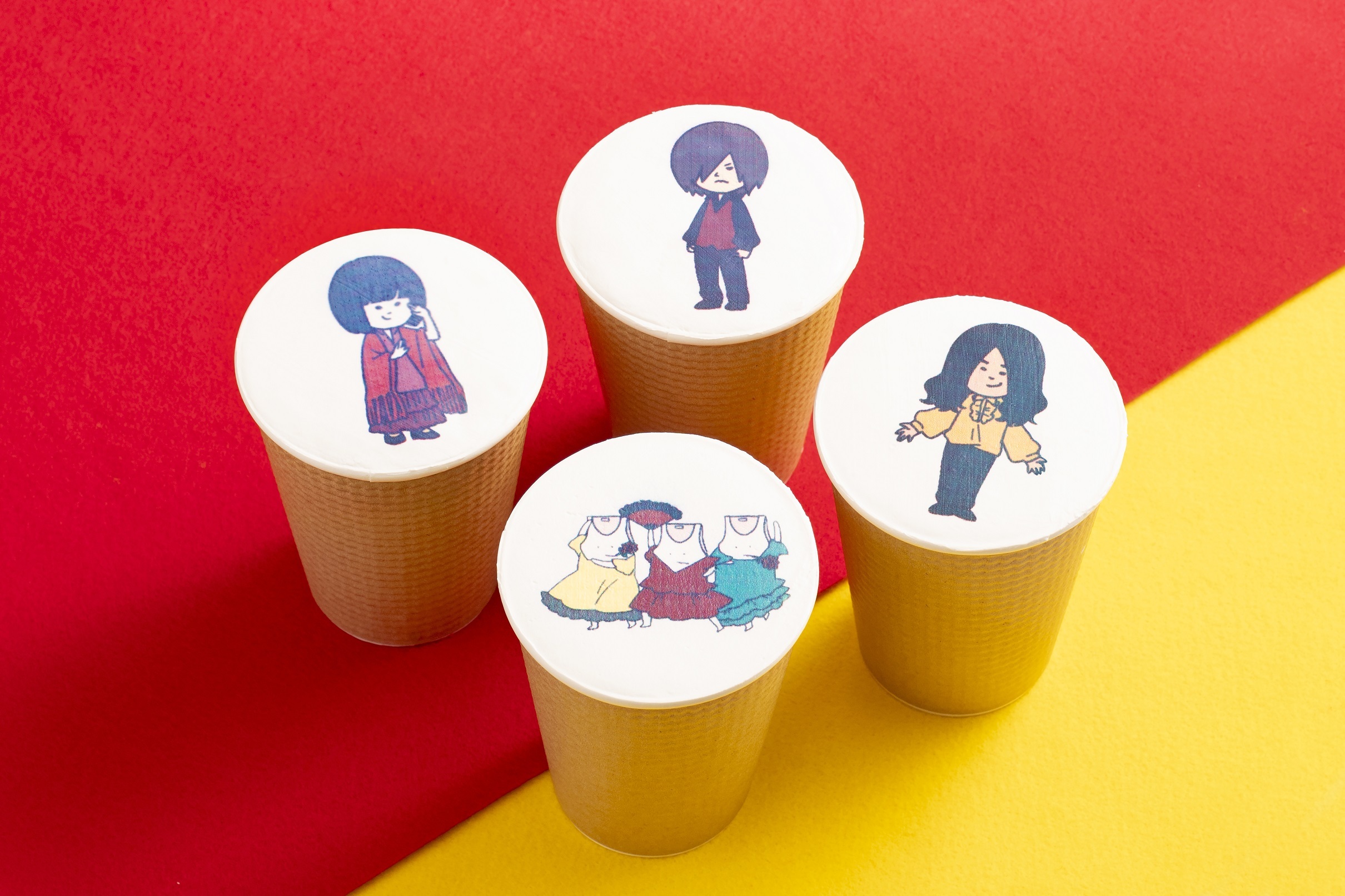 タンクトップくんが可愛いパエリャ、チュロサンデー、チーズバーガーやメンバーのイラストがあしらわれたラテなど、ヤバイTシャツ屋さんの個性光る全7種類のコラボメニューを販売します。