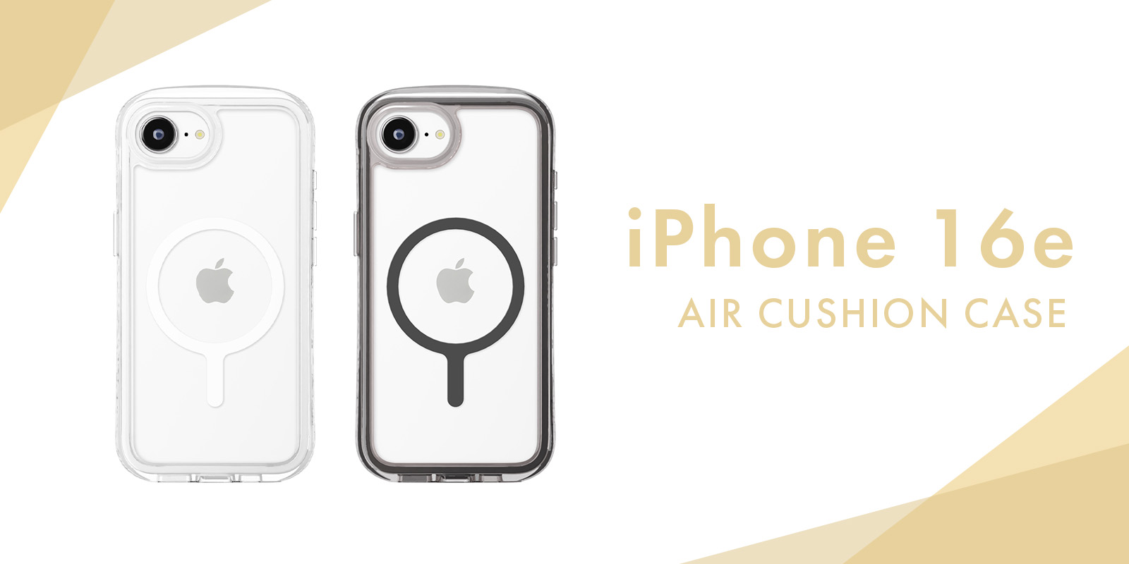 各種MagSafeアクセサリーに対応した360°エアクッション構造でiPhone本体を衝撃から守るiPhone 16e対応のエアクッションケースです。