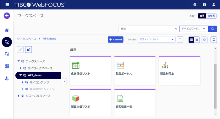 コンテンツ管理からバックグラウンドでの管理機能まで、WebFOCUSのすべての機能にシームレスにアクセスできるようインターフェースが刷新され、様々な操作がより直感的に行えます。