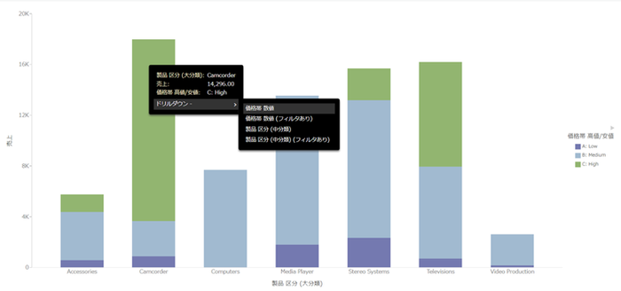 複数の分析ディメンションをワンクリックで切り替え可能なため、多角的な分析を実現します。