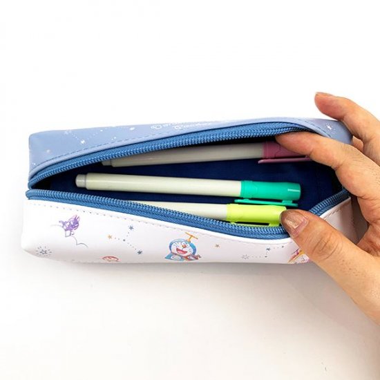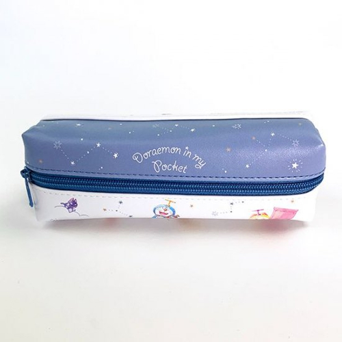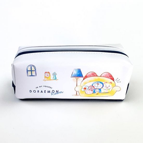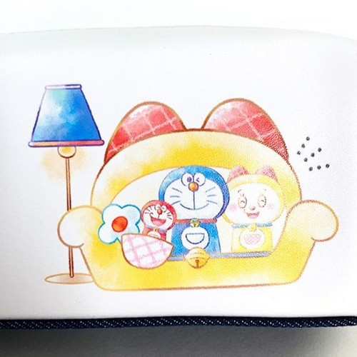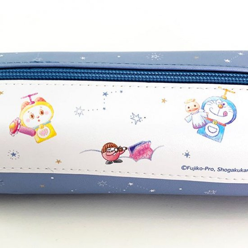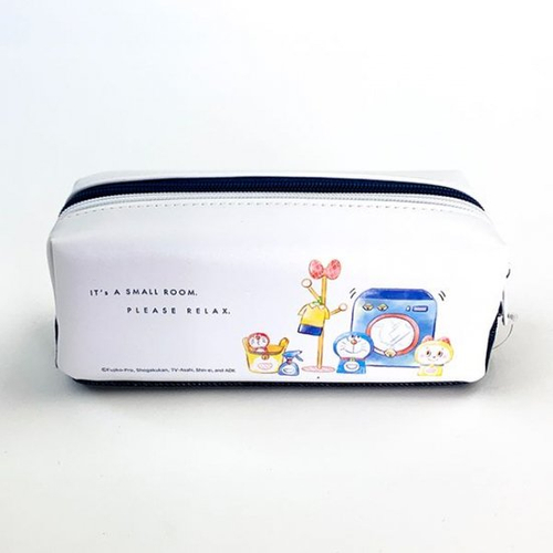 全体像はこんな感じです。底部分はデニムカラーでホワイトとネイビーのコントラストが効いてますね!全体がドラえもんのお部屋になったペンケースです。