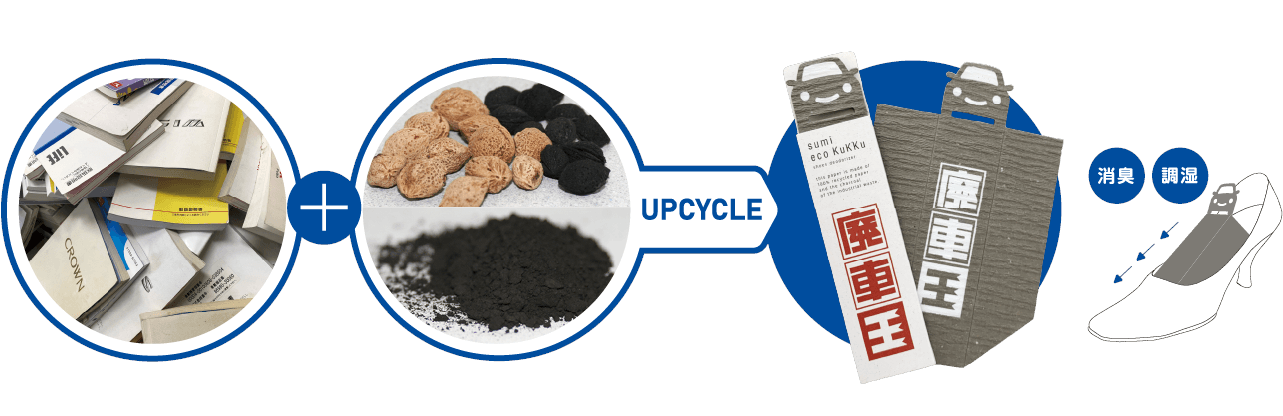 廃車買取サービス「廃車王」(運営元:株式会社NGP、本社:東京都港区、代表取締役:佐藤 幸雄)と、山陽製紙株式会社(本社:大阪府泉南市、代表取締役:原田 六次郎)は、廃車となった自動車の取扱説明書と産業廃棄物となる梅の種、本来廃棄となる2つの廃棄物を掛け合わせた「炭再生紙」を用いてアップサイクルした、消臭・除湿機能がある靴用のノベルティ「廃車王 炭エコクック」を共同で製作しました。
