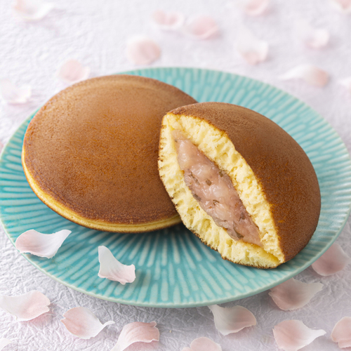 静岡県産大島桜の葉を細かく刻み白あんにまぜ込みました。かのこ豆の食感も楽しい桜の香りが口いっぱいに広がる季節限定のどら焼です。