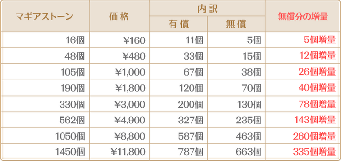 期間限定で、おまけ(無償マギアストーン)を増量したマギアストーンが登場いたします。