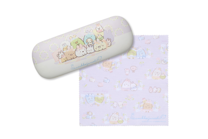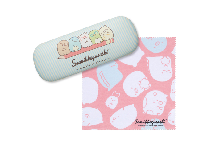 毎日の学校や遊びがもっと楽しくなるよう、かわいいすみっコたちが子どもたちにそっと寄り添うようなデザインに仕上げました。メガネにはメガネケースとメガネ拭きがセットになっています。