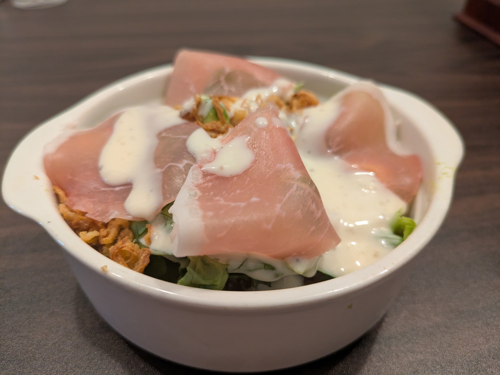 また、ランチセットには、食後の満足度を高めるためにバランスの取れたサラダとスープを添えて提供。