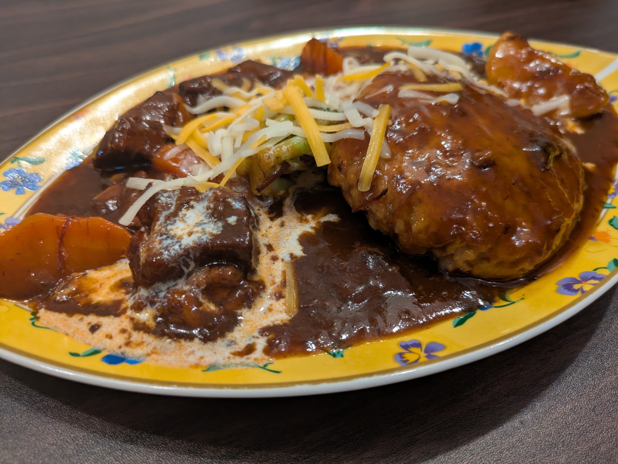 時間をかけて煮込むことで、牛タンは驚くほど柔らかく、口の中でほろりとほどける極上の食感に。ソースには赤ワインと香味野菜の旨みが深く溶け込み、濃厚でコクのある味わいに仕上がっています。