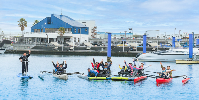 都会にいながらマリンアクティビティ、クルージングなどのレジャー体験ができる複合施設「大阪北港マリーナ」。大阪北港マリーナのマリンアクティビティでは、ボードの上に乗りパドルを使って漕ぐ「SUP」や足漕ぎペダルで進むユニークな水上アクティビティ「HOBIE」、猛スピードで水面を走る「水上ジェットコースター」など大人からお子様まで楽しめる体験となっています。大阪北港のいつもと一味違った景色を眺めながら、海上散歩を楽しんだりお子様と一緒になって楽しめる公園「PARK HULL」で過ごしたり遊び方は様々です。
