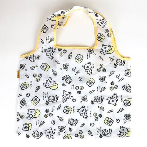 リラックマとスイーツの総柄になった、シンプルなデザインのエコバッグです。縁取りがソフトなイエローカラーで、アクセントになっています。