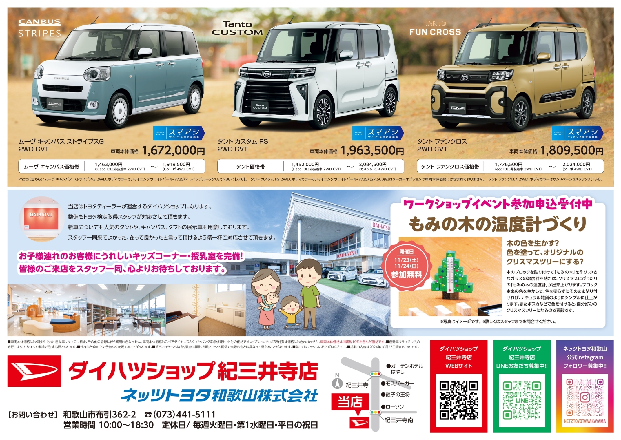 ネッツトヨタ和歌山のダイハツショップ紀三井寺店が 11月1日(金)~30日(土)にオープン5周年フェア第2弾を開催!