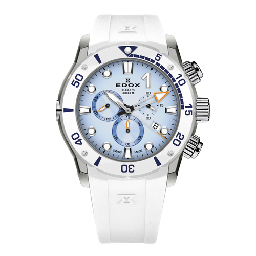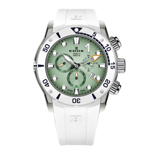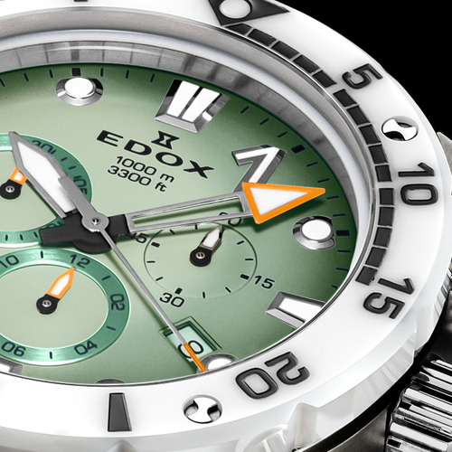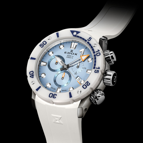 最高速度が200km/hを超え、海のF1とも称されるパワーボートレースのダイナミックかつラグジュアリーな世界観を投影した、エドックスのフラッグシップコレクションです。厚さ3.5mm以上の重厚なセラミックベゼルや300~1000m防水を標準スペックとして備え、素材や仕上げへの一切の妥協を許さず審美性を追求することで、タフネスとエレガンスを両立しています。