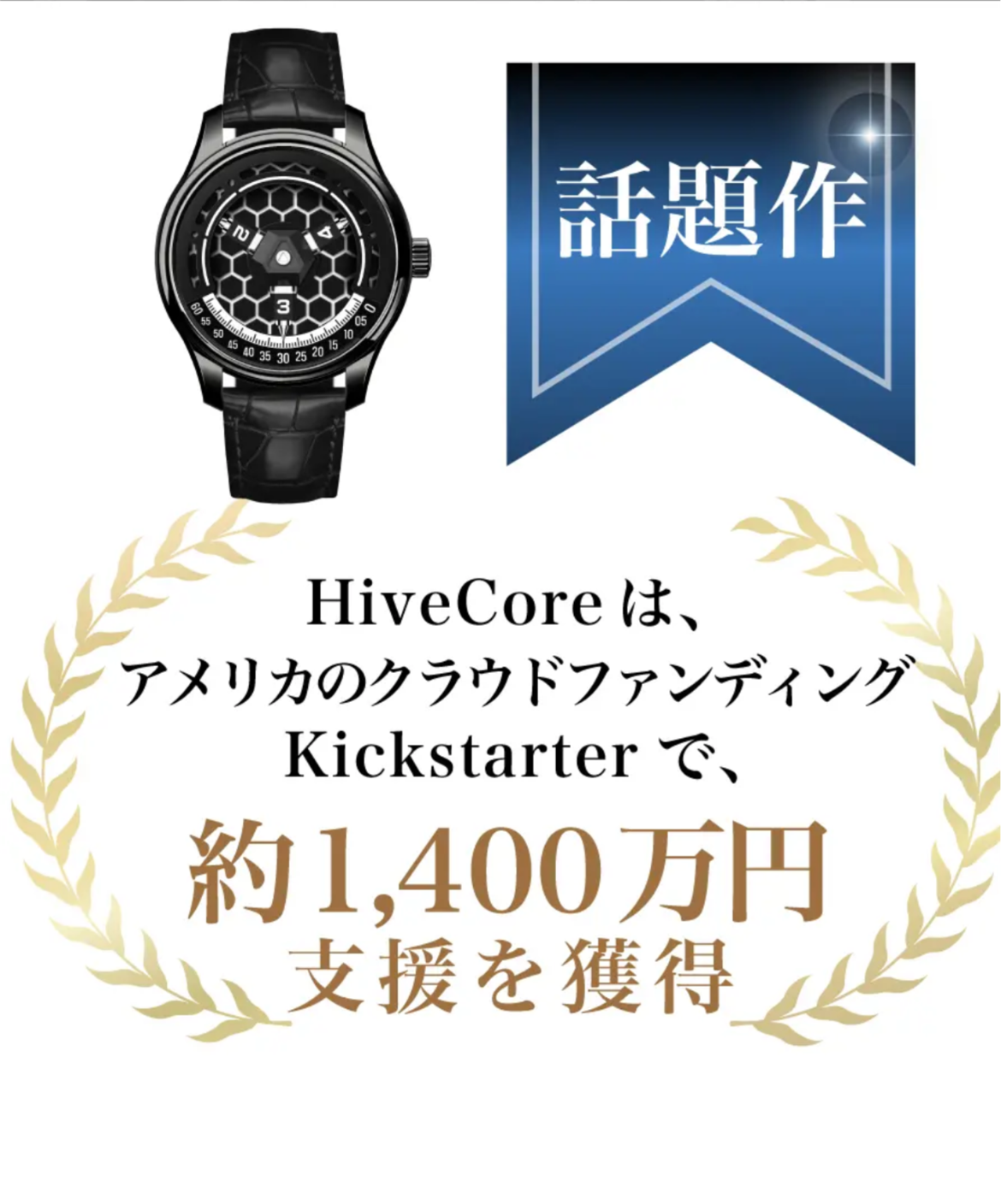 回転で時を魅せる機械式腕時計「HiveCore(ハイブコア)」が、応援購入サービスMakuakeにおいて支援総額500万円を突破した。