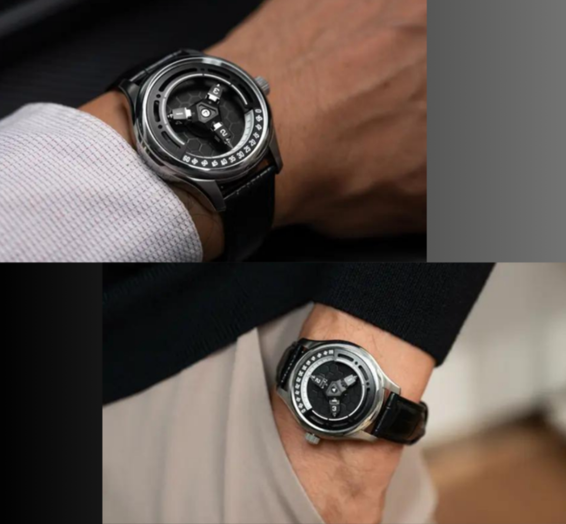 HiveCoreは、一般的な「針で時刻を読む時計」とは異なり、立体的に動く構造そのものを楽しめる設計を採用した機械式腕時計である。
