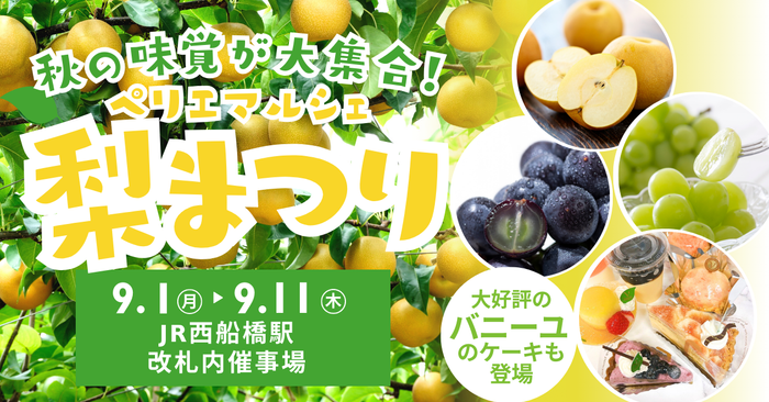 株式会社菜花の里(本社:千葉県成田市、代表者:河越 康行)が運営する『PERIE MARCHE(ペリエマルシェ)』は、2025年9月1日(月)から11日(木)まで催事場にて「ペリエマルシェ梨まつり」を開催いたします。全国有数の梨の産地である千葉県産の旬の梨が一堂に集結。ひと口ごとに広がる爽やかな甘みとみずみずしい果汁で、夏の名残と秋の訪れを同時に感じていただけます。人気銘柄の食べ比べもできる、季節限定の特別な催しです。
